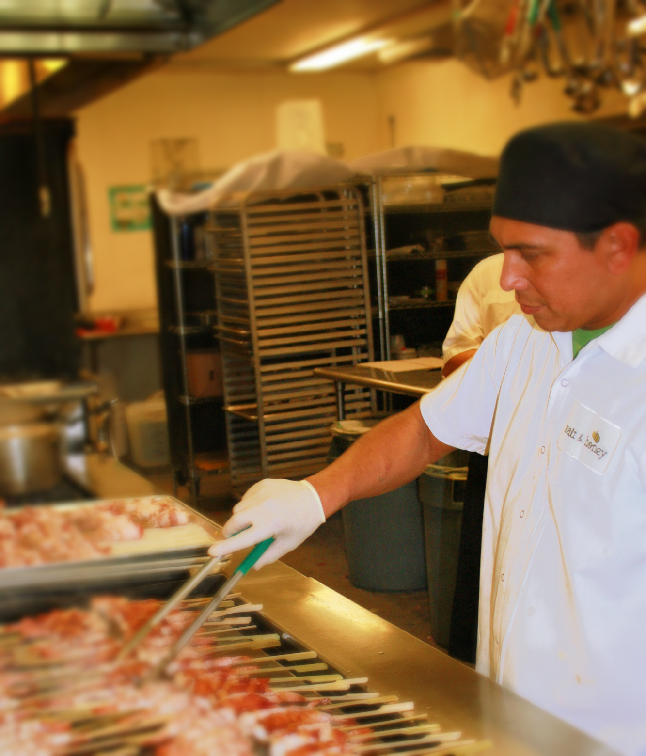 Sous Chef Willie making our bacon wrapped shrimp skewers